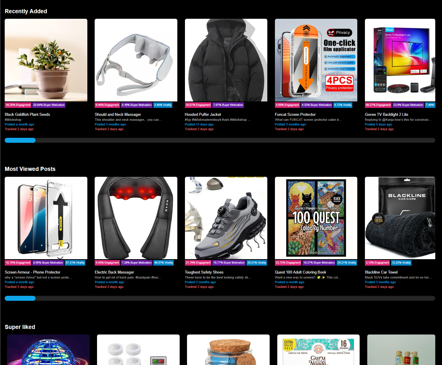 Get real-time insights on viral TikTok posts with engagement metrics, sales data, and performance analytics.